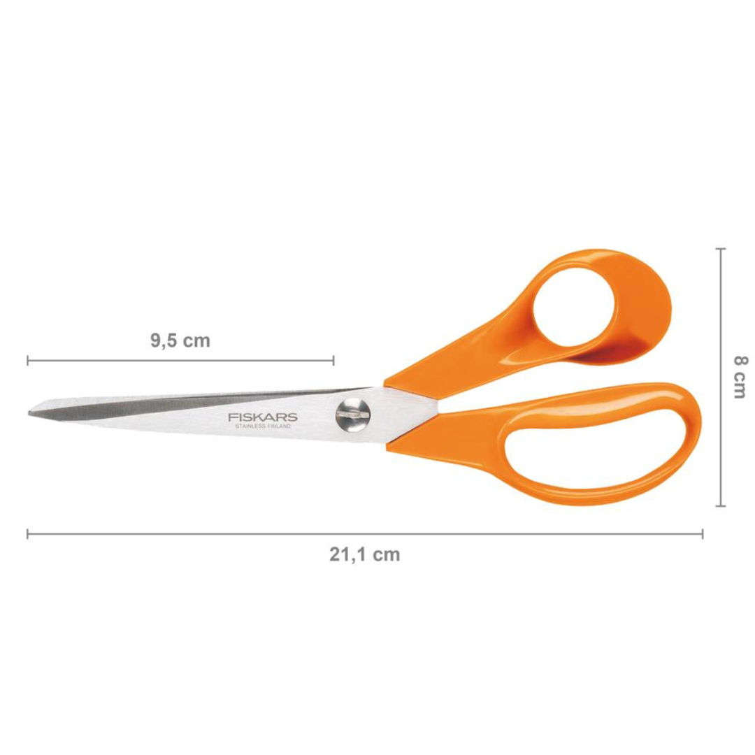 For over 50 years, Fiskars scissors have been a household essential. Crafted with stainless steel blades and ergonomic handles, they deliver clean, effortless cuts whether you’re sewing, crafting, or working in the garden. Experience the comfort and control of genuine Fiskars quality.