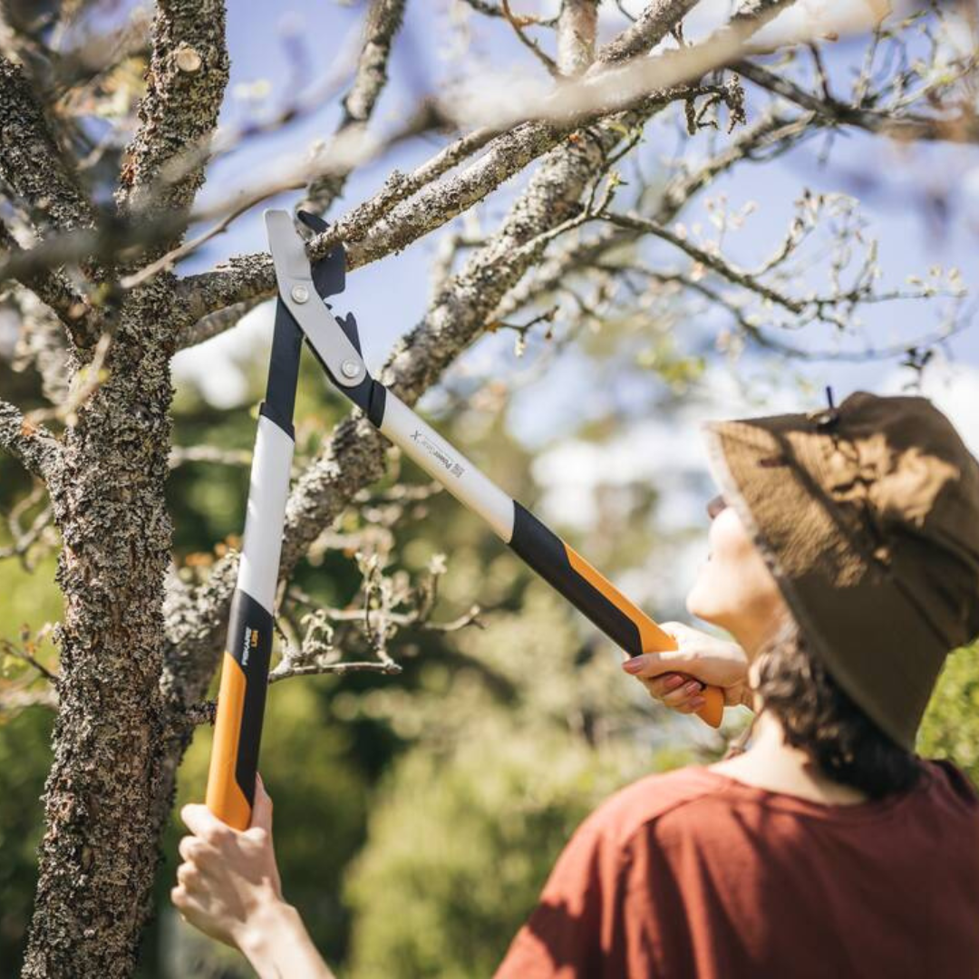 The Fiskars PowerGear™X bypass lopper is designed for frequent cutting of fresh wood. It gives you three times more force thanks to its unique patented mechanism. Add precision-ground stainless steel blades and friction-reducing PTFE blade coating to the equation and you have a real cutting edge combination. As well as the stainless steel blades, it has a weather-resistant, light, and yet incredibly strong aluminium shaft. Its SoftGrip™ material and 3D contour moulding means you need less force to hold it.