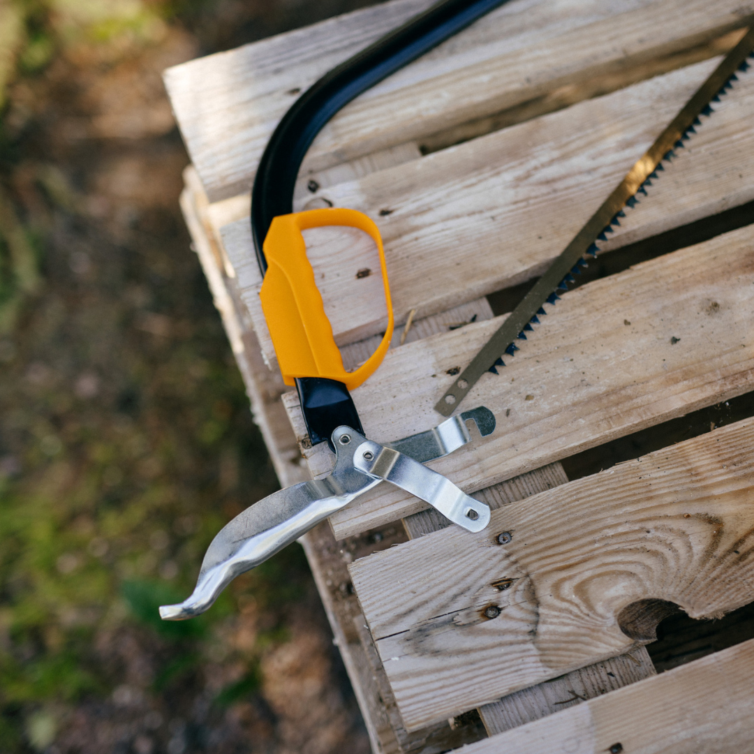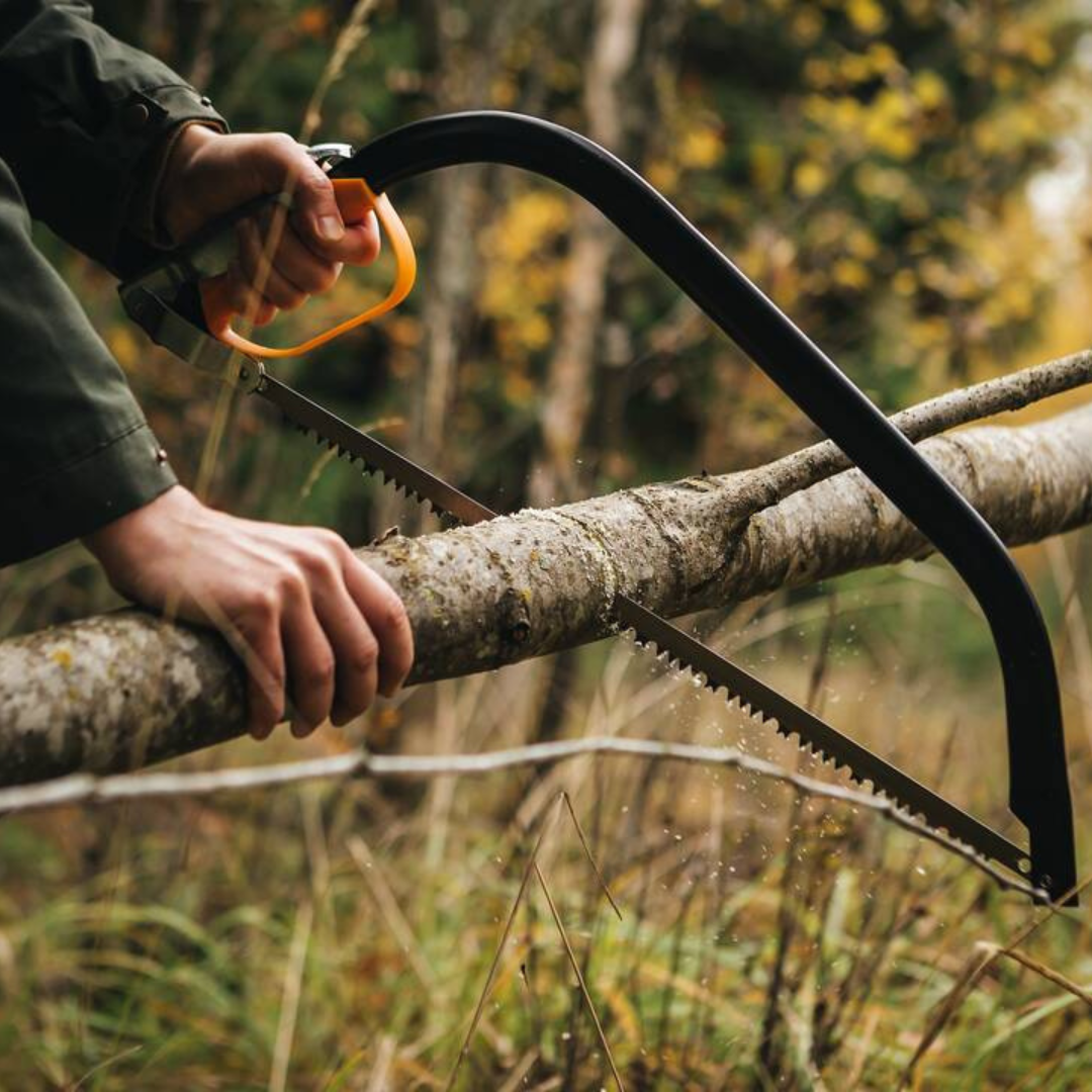 Fiskars 21" Bow Saw SW30 is truly excellent for sawing stems and thicker branches when you are out in the garden doing heavier pruning. The curved nose enables cutting in hard-to-reach or difficult positions, typically in places a lopper cannot access, and sawing is fast and easy due to its unique 'plane toothing' which cuts on both the push and pull stroke. This saw comes with a plastic protector for safe transportation when moving around the garden.