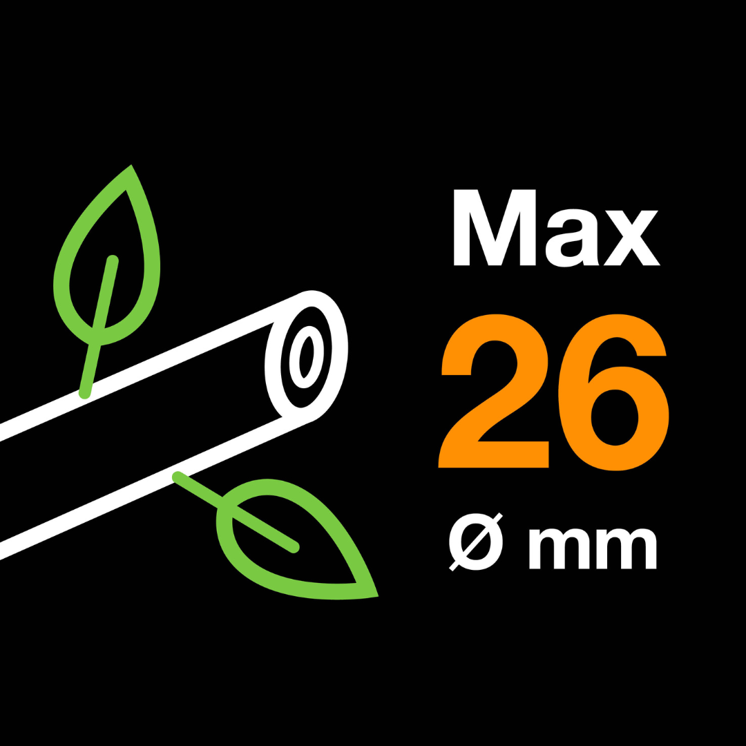 - Blades are designed with side supports, so they are held in place when cutting thicker branches